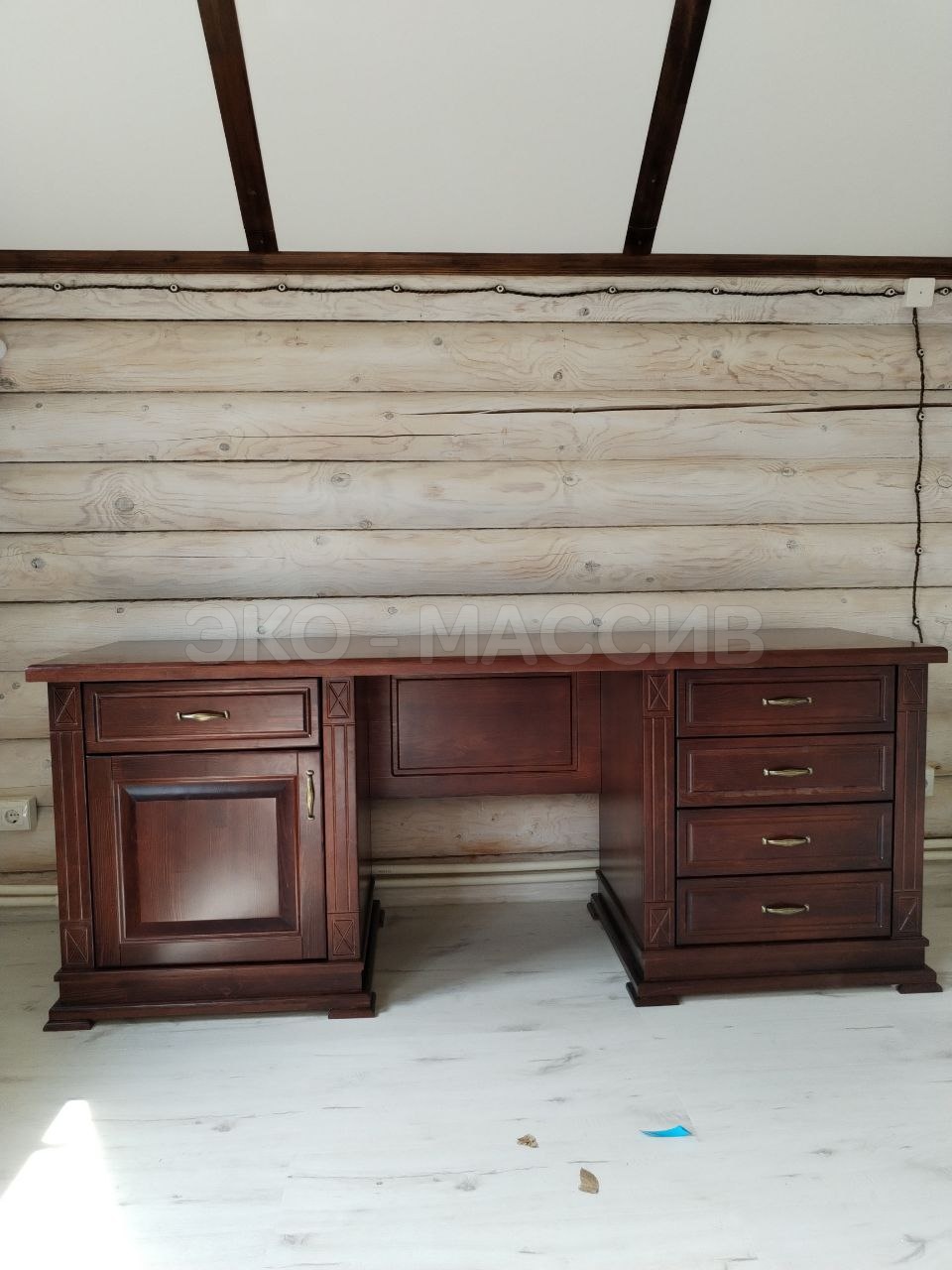 Письменный стол Хьюстон-2 из массива бука выполнен в классическом стиле, подходит как для рабочего, так и для офисного дизайна. Конструкция устойчива к царапинам, прочна и надежна. Товар состоит из двух тумб, одна из которых комплектуется четырьмя выдвижными ящиками, а другая — одним и вместительной тумбой. Столешница просторна и удобна.
